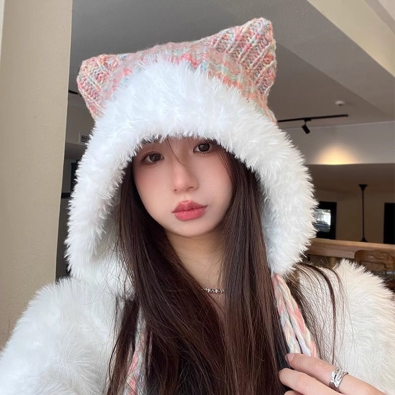 帽子の女性は冬の保温耳が甘くて可愛いです。