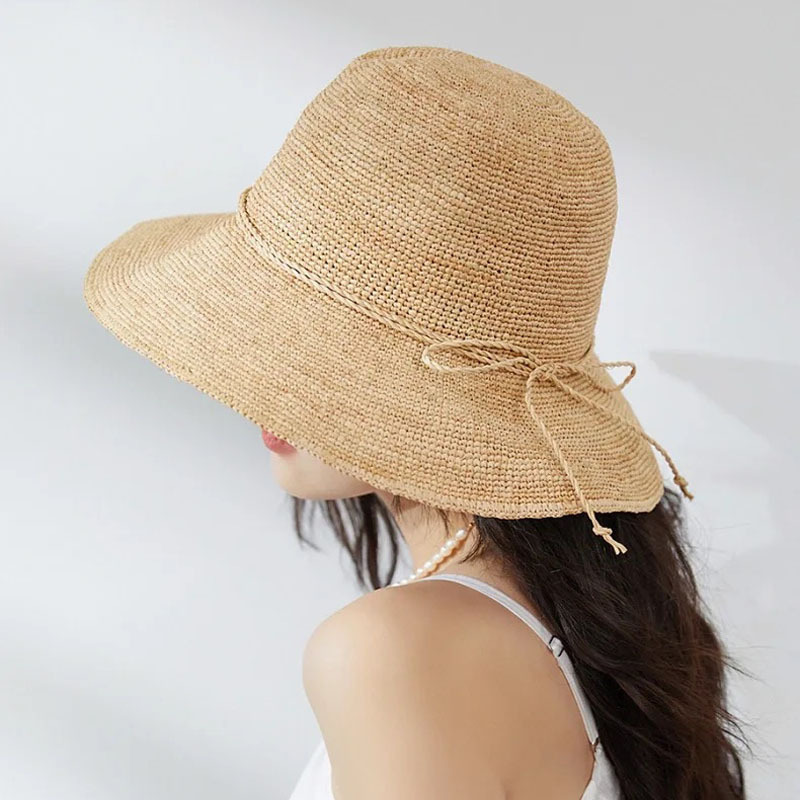細いかぎ針の盆栽の帽子の手作りのラフィーの麦わら帽子の帽子の麦わら帽子の女性の夏の日焼け止めの帽子の4の鉤織