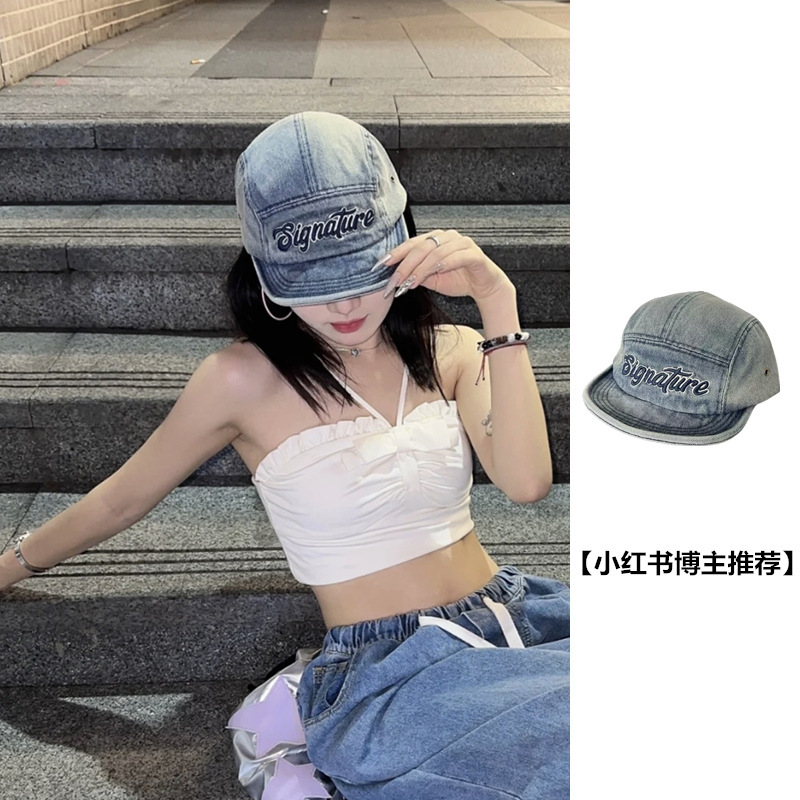 2024新型国境を越えたネットレッドの街頭ファッション水洗いデニム野球帽男女韓国版アルファベット