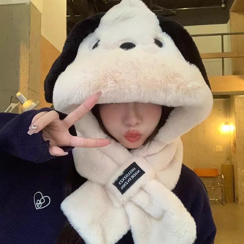 かわいい子犬の長い耳のぬいぐるみの帽子のマフラーの一体の雷鋒の帽子の女性の秋冬の顔の小さい保温の2つのセット