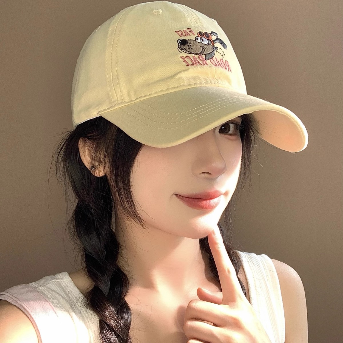 韓国のかわいいアメリカンコミックスタイルの子犬野球帽夏薄い多用途カジュアルひさしキャップつば広日焼け止め帽子