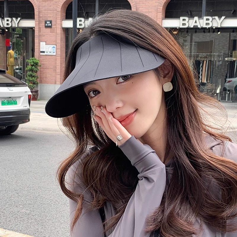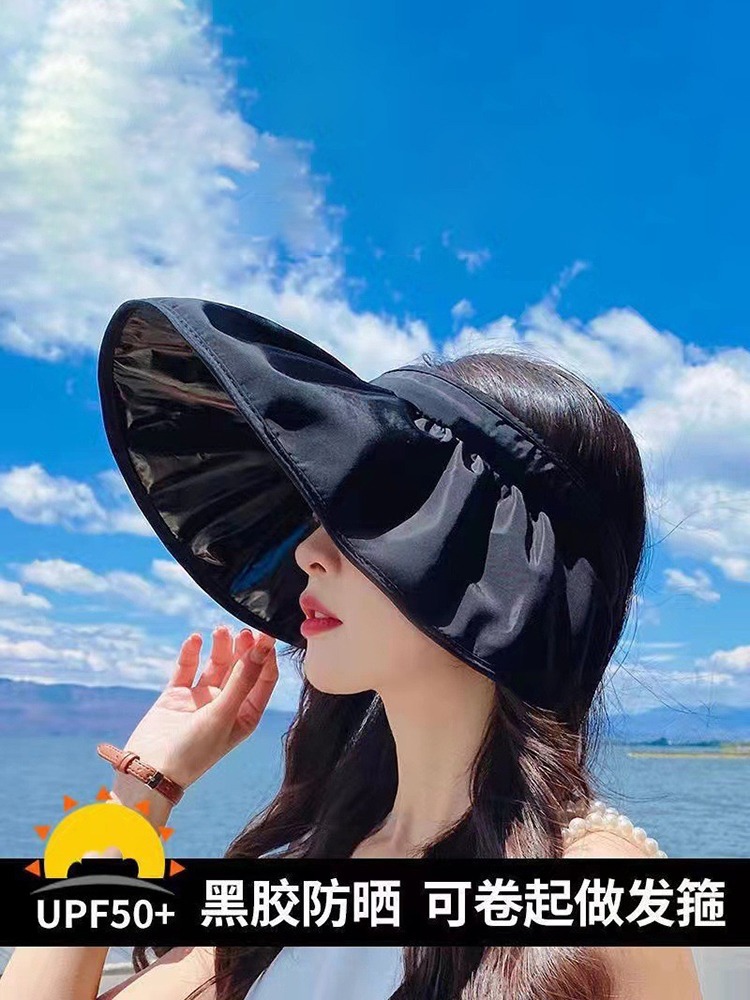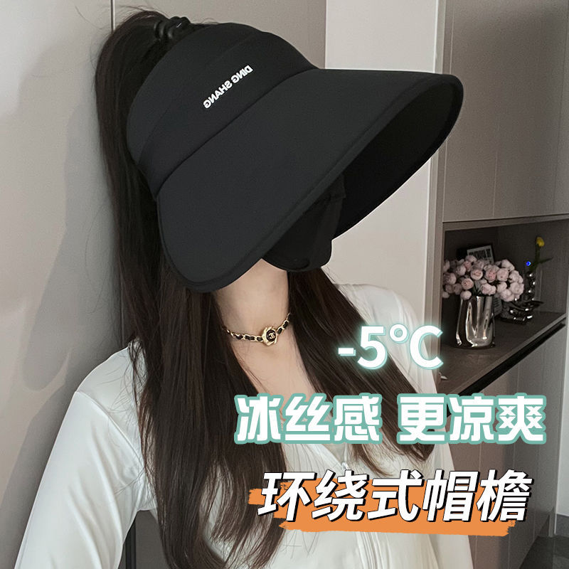 新型空頂日焼け止め帽子女性夏紫外線防止帽子のつばを大きくして自転車に乗る日よけ帽子黒い氷糸太陽帽子