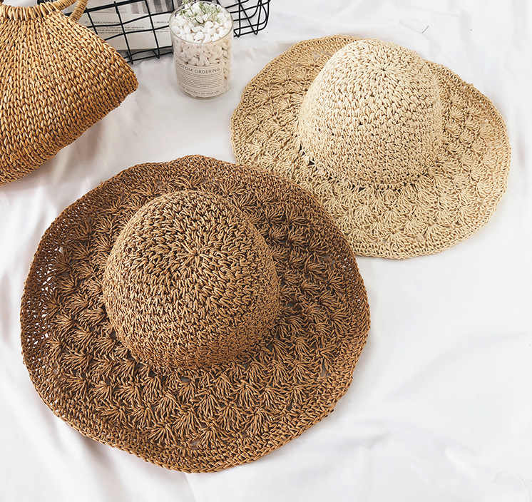 韓国版折りたたみ可能なビーチの麦わら帽子の女性夏には、小さな新鮮な海辺の大きな日焼け止めの日よけの日よけの日よけの帽子の夏があります。
