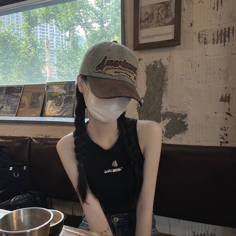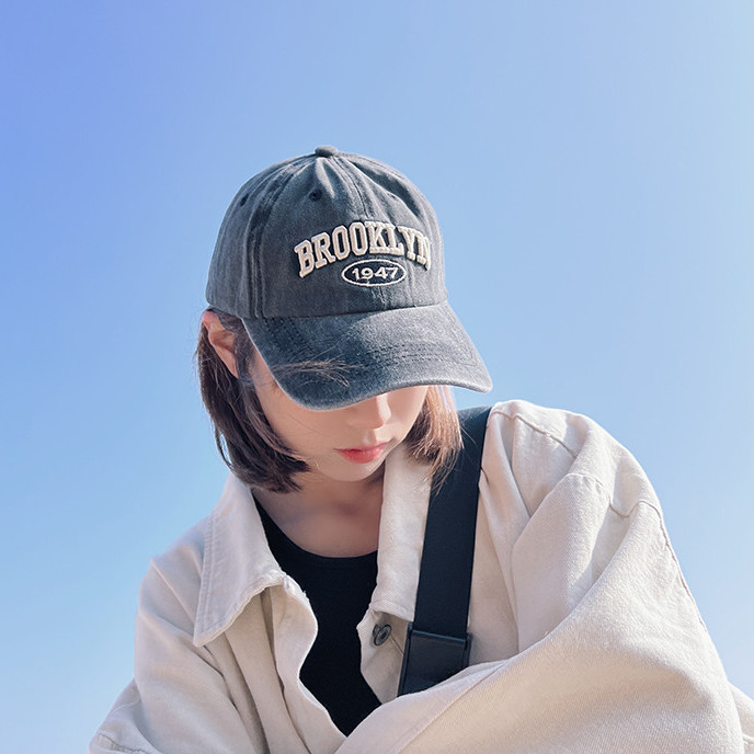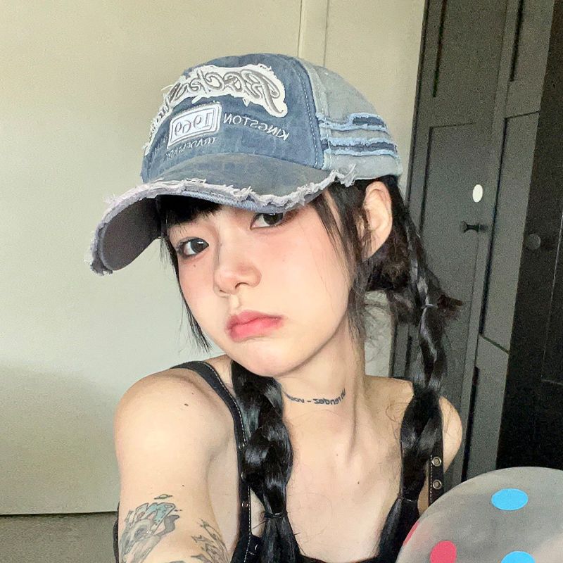アメリカの古いデニムのアヒルの舌の帽子の女性のネットの赤い街はヒップホップをたたいて水洗いして布を貼ります。