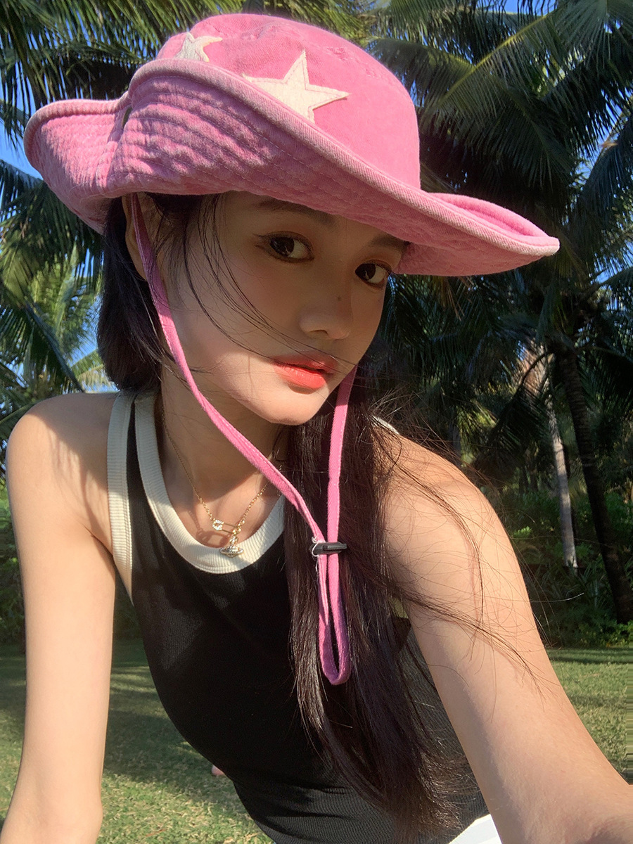 レトロ星西部カウボーイ帽女性春日よけ日焼け止め登山帽屋外キャンプ漁師帽