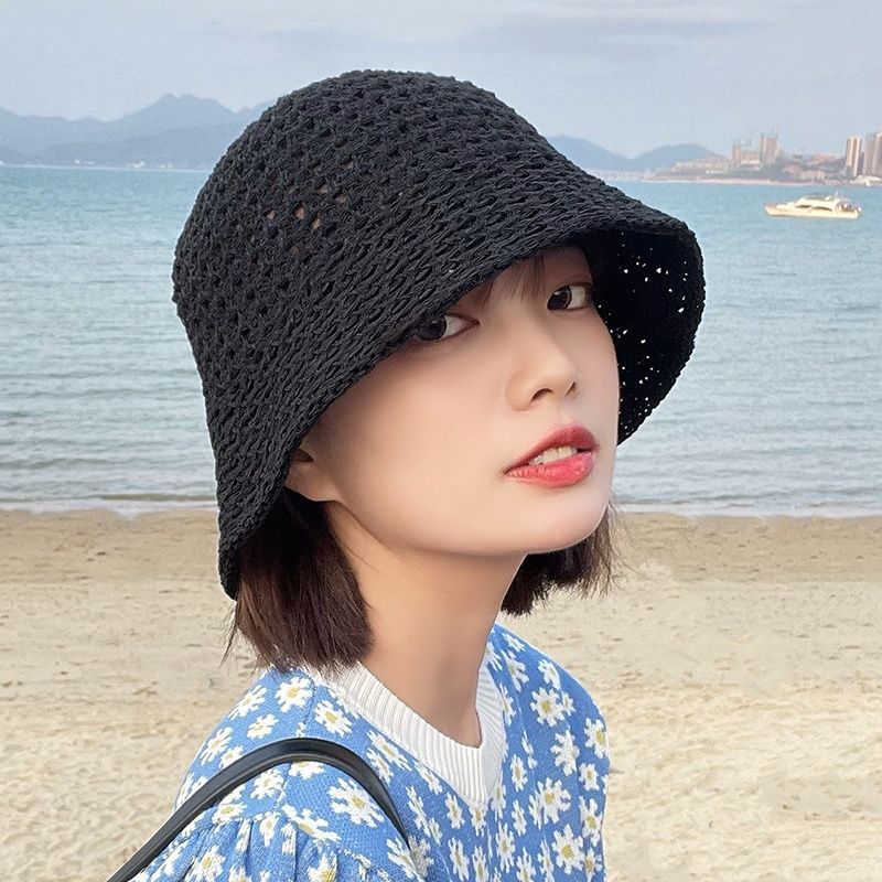 夏には透かし彫りの漁師帽の女性韓国版帽子の薄い金の朝と秋の日よけの盆帽子の通気性のバケツの日よけの帽子