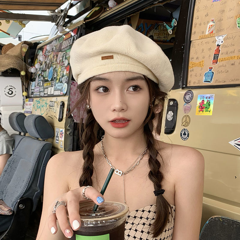 西本のネットの赤い金の皮の標識の百合のベレーの帽子の女性の春夏の薄い金の通気性の韓国版insの画家の帽子は顔の小さい潮を現します。