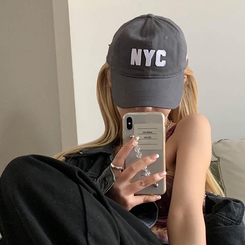 布のアルファベットの野球帽の女性の夏の韓国版のinsの大きい頭の周りの百合の柔らかい頂のアヒルの舌の帽子は顔の小さい帽子の潮を現します。