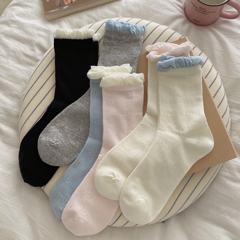 ボンレスソックス KT 猫薄型ミッドカーフソックス中空バレエスタイルレディースソックス日本製バブルレース純綿パイルソックス