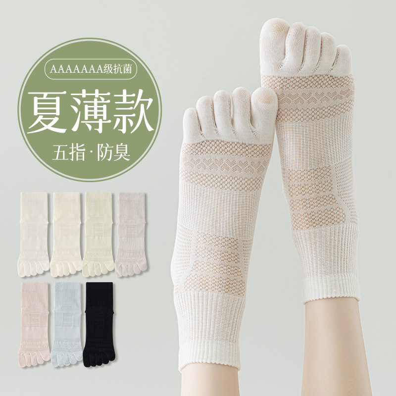 5本指靴下レディース绢糸靴下ショート筒春夏薄いメッシュ通気吸汗抗菌分指ソックス