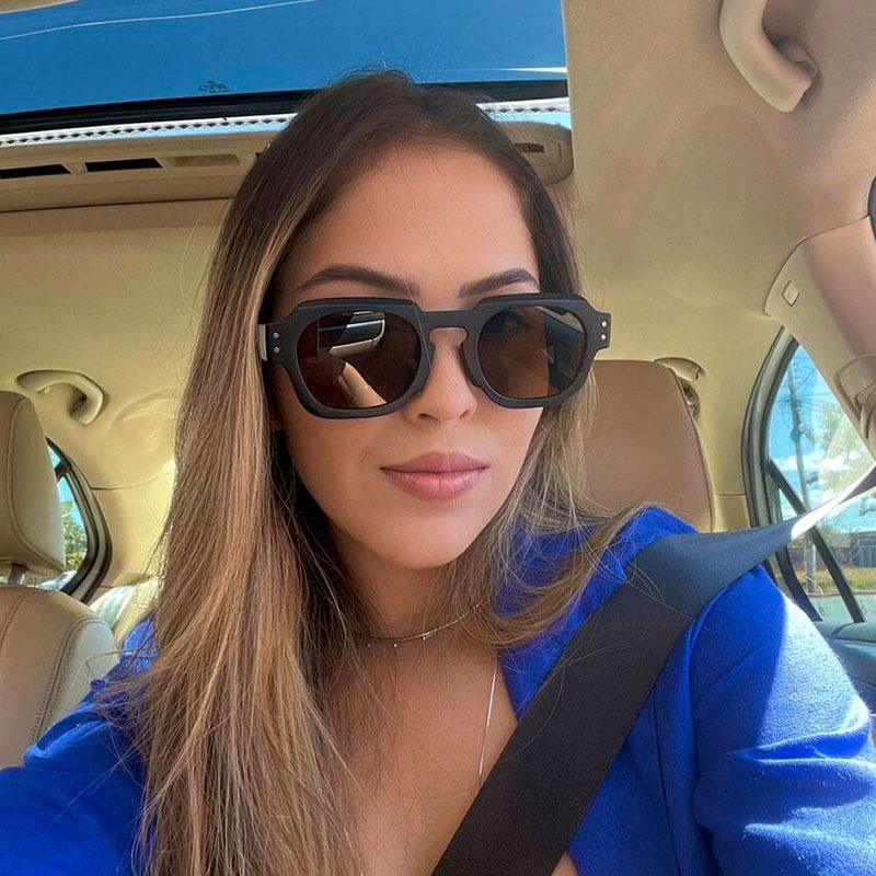欧米の甘いクールなギャルの黒い四角形のサングラスの女性の高級感の丸い顔はやせています。