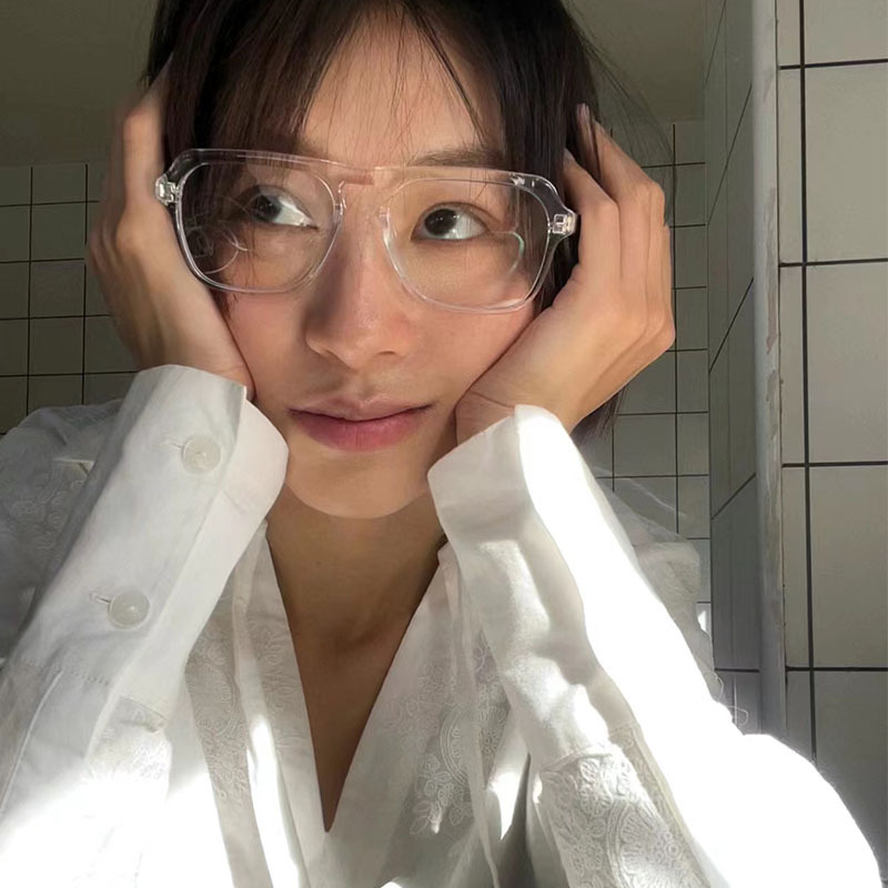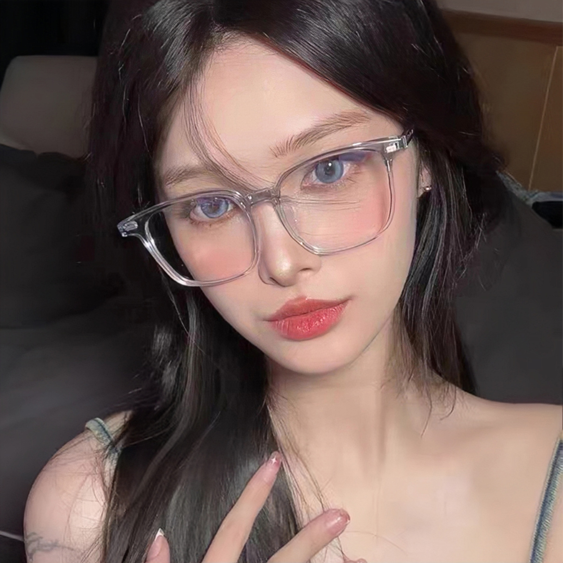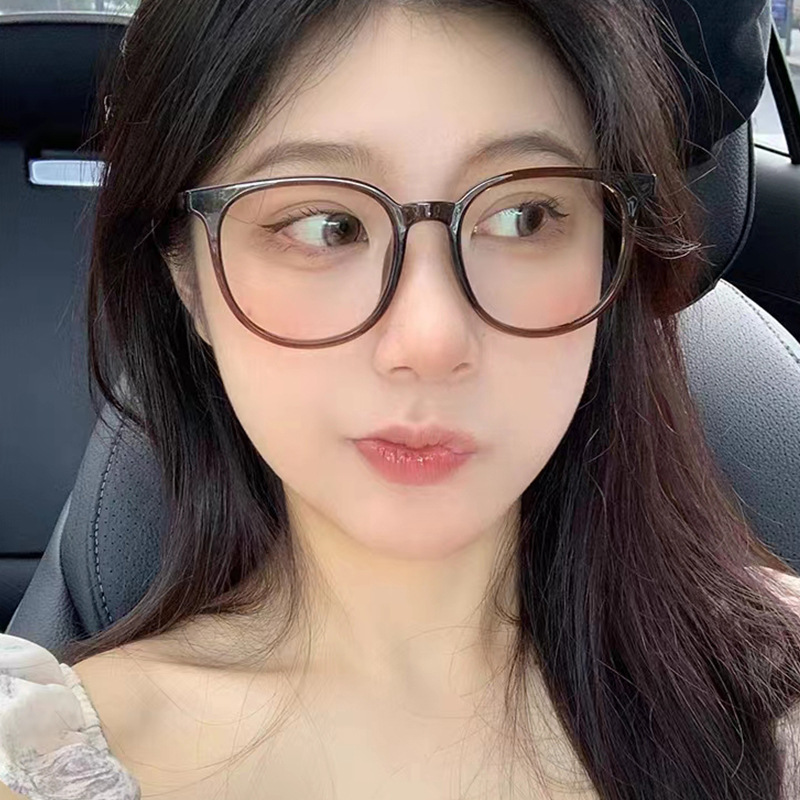 韓国版透明色の正方形の大きいフレームのメガネのフレームの女性の潮の丸い顔は度数の素顔の近視鏡を配合することができます。
