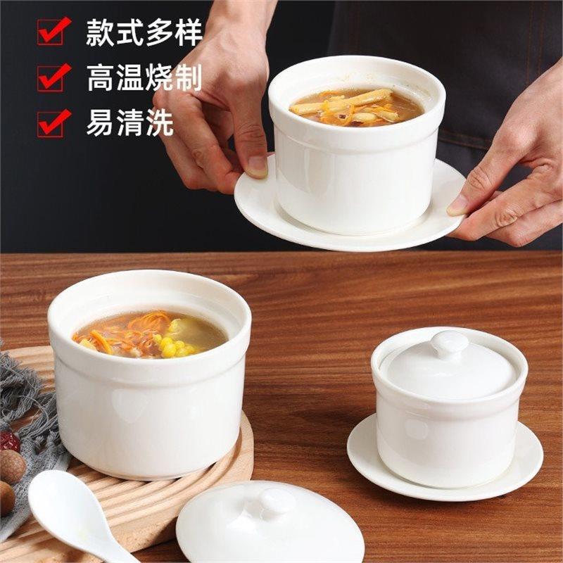 純白ホテルセラミックシチューポット家庭用防水蓋付きツバメの巣蒸し卵カップボウルスープライナーシャクシアン商業シチューポット