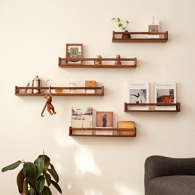実木の壁の棚の壁の本棚の黒い胡桃の木の本は雑誌の棚の新聞の収納棚の壁掛けの絵本の棚を申し込みます。