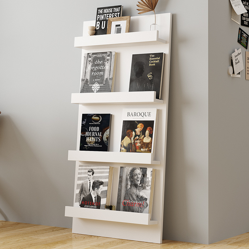 白い新聞棚が床に落ちた本棚は壁に寄りかかって棚を収納します。