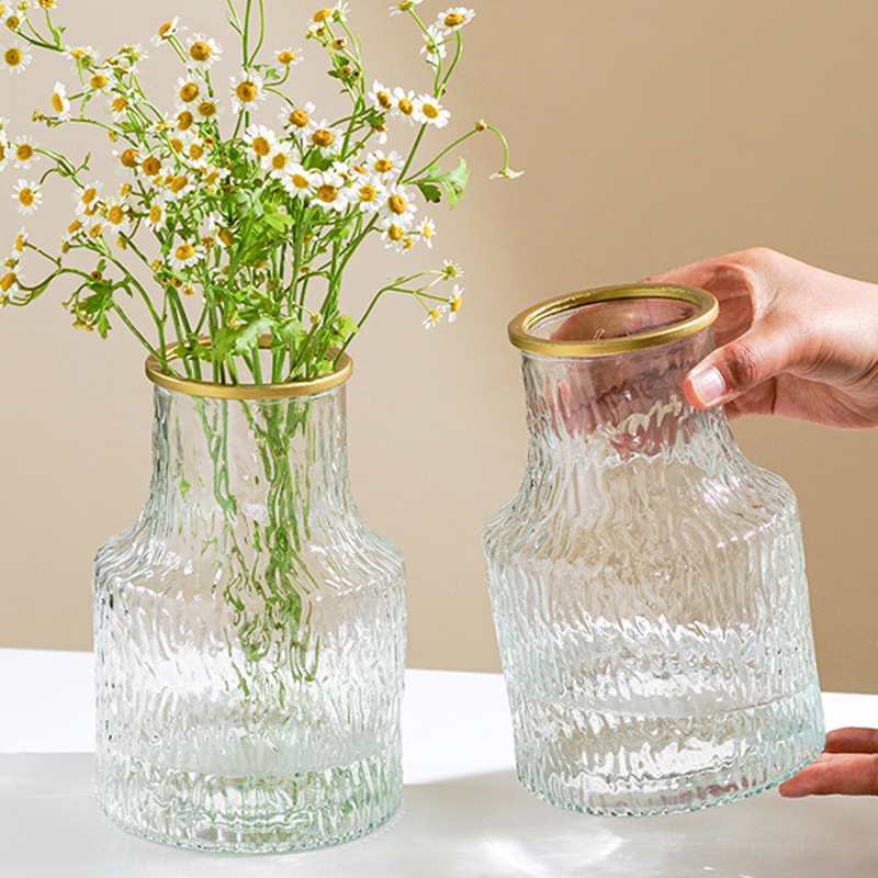 氷河ガラス花瓶高颜値ins風大口花瓶客間寝室デスクトップ水養生け花飾り