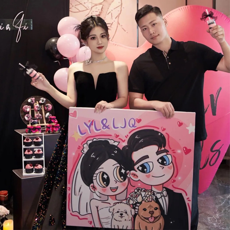 星蝶の王女の装飾画の手描きの漫画のカップルの写真は油絵を掛けて親友に結婚して新婚プレゼントを予約します。