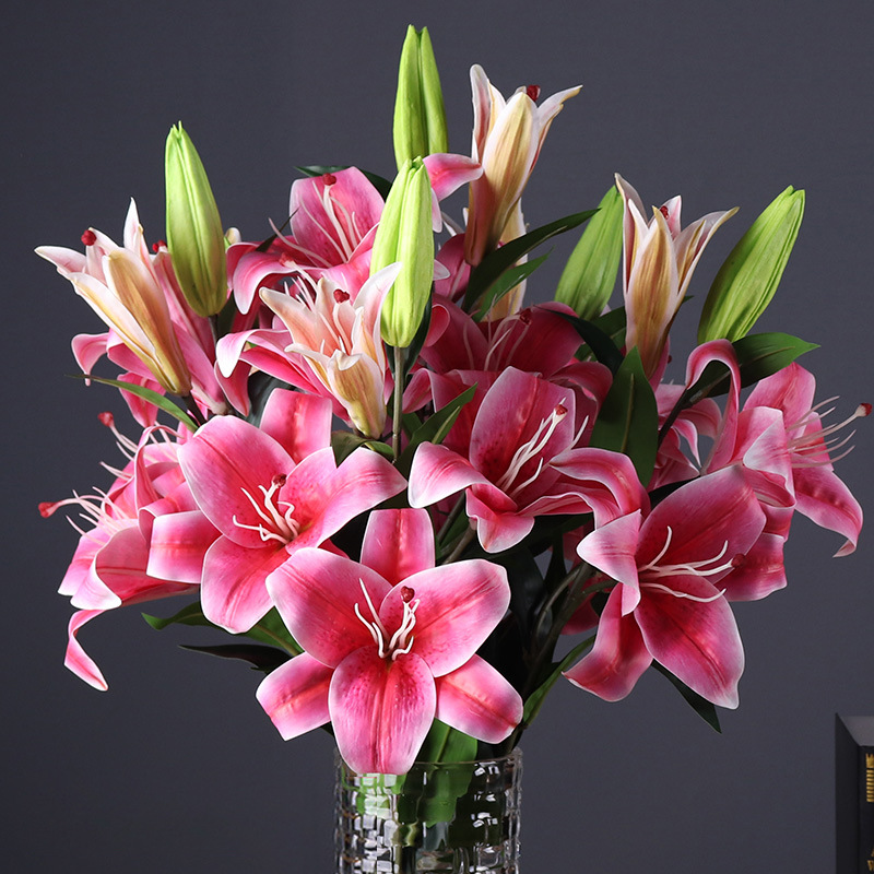 ユリの花の3dの手触りのプラスチックの偽の花の水洗いする食卓puの花の置物の客間の結婚祝いの装飾