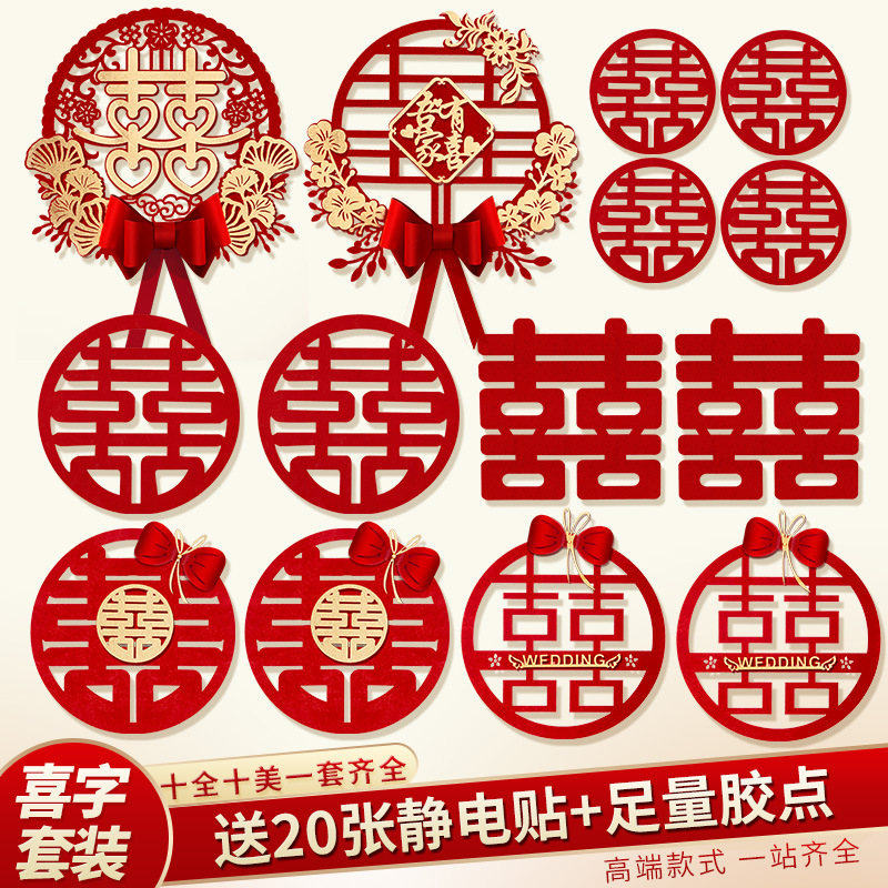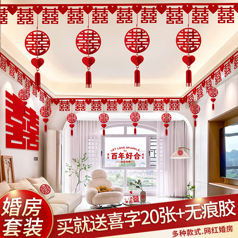 リビングルームの装飾結婚用品大全結婚部屋の配置セット男性の結婚式の喜びの字の花の部屋の天井のセット