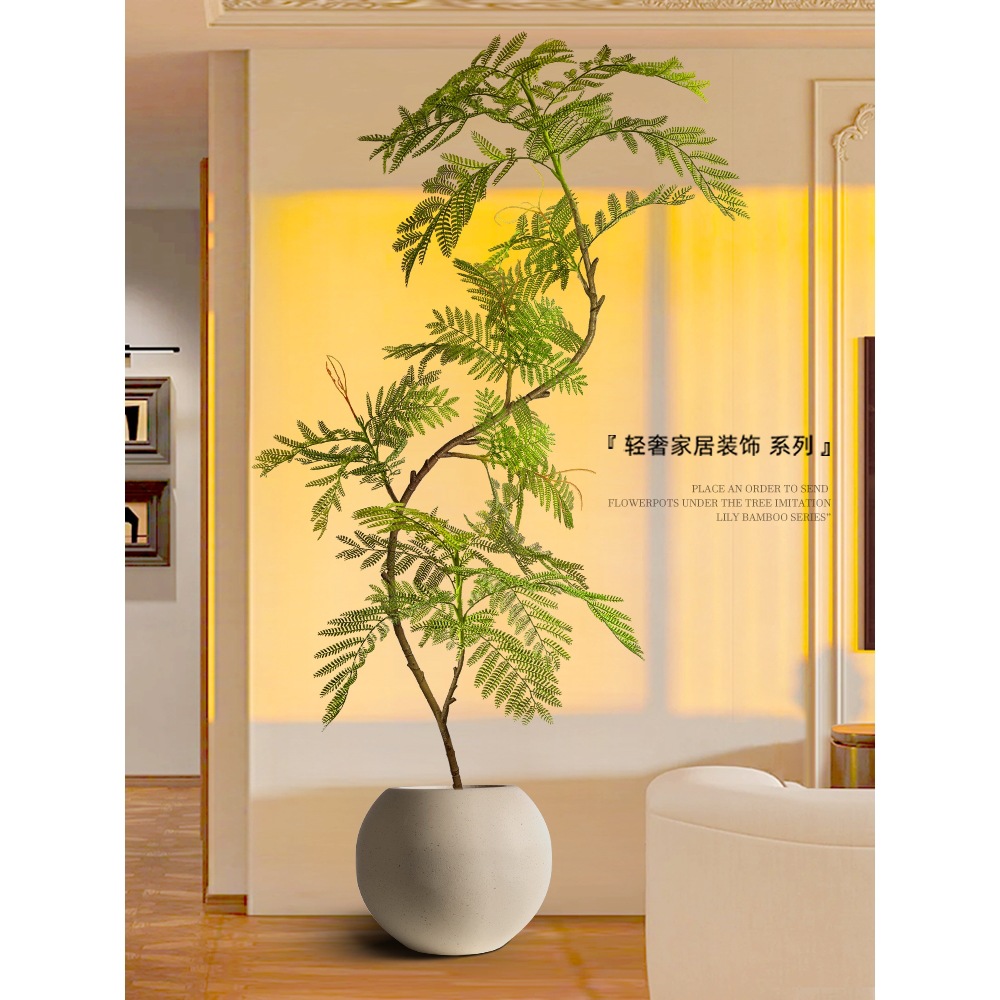 緑の青い花のカランダの室内の鉢植えの大型のバイオニックの植物の偽の木の軽い豪華な客間の装飾品の床の装飾品