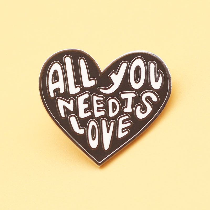 ロックバンド金属バッジハート型音楽エナメルピンあなたが必要とするのは英語のブローチを愛することです