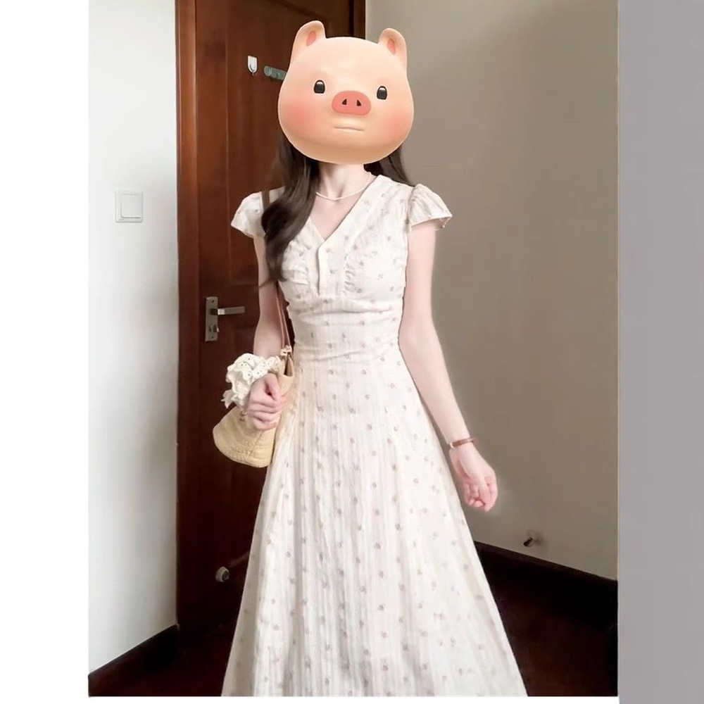 フレンチVネック花柄ワンピースレディース夏新作気質高級リゾート風ウエスト痩身Aラインロングスカート