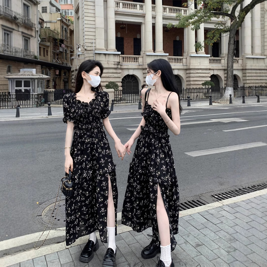 プラスサイズの純粋な欲望のホットガール花柄ドレス女性の夏のハイエンドスリットスカート太ったmmカバー腹痩身サスペンダースカート