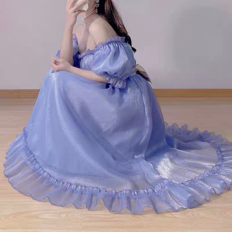 フレンチブルーの逃亡王女大人ドレスワンショルダーバックレスリボンバンケットドレスライトラグジュアリースカートスーパーフェアリー