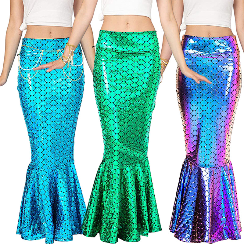 アマゾンの欧米の人気大セクシーなマーメイドのロングスカートはチェーンの魚の尾の半身のスカートのコスプレの舞台の服を持ちます。