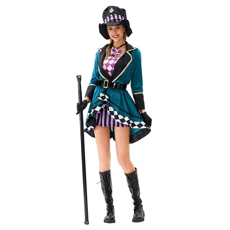 S-6XLの大きいサイズの欧米のハロウィンの服装のアリスのマジックの狂った帽子の女性の成人の魔法使いは服装を演出します。