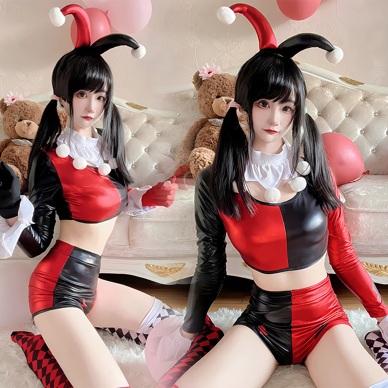新しいハロウィーン衣装cosサーカス滑稽醜い服アニメハリー・クイン舞台演技服女