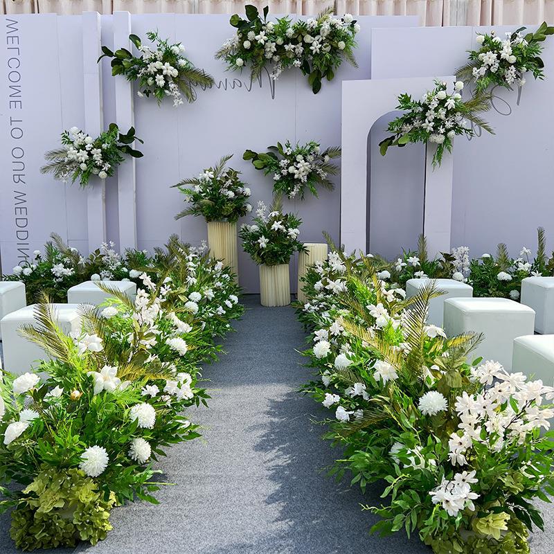 新商品の結婚祝いの大きいタイプの花と絹の花の完成品の装飾の森系の緑の花の列t台の路は結婚式の花の芸の場所を導きます。