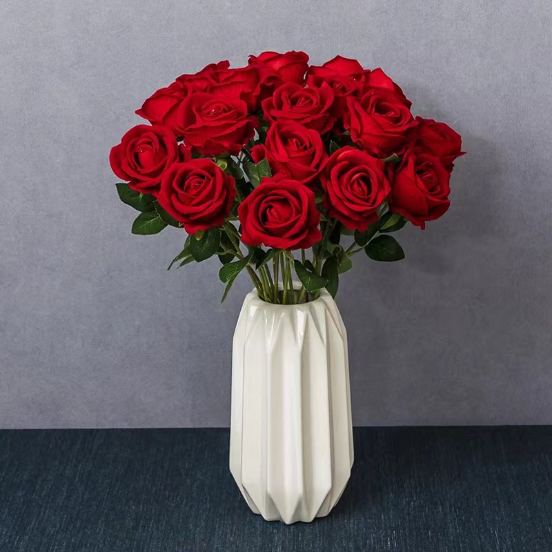 クロスボーダーのシミュレーションバラの結婚式の絹の花のプラスチックの花の単枝のフランス式の客間の装飾の食卓の偽の花の置物の卸売り