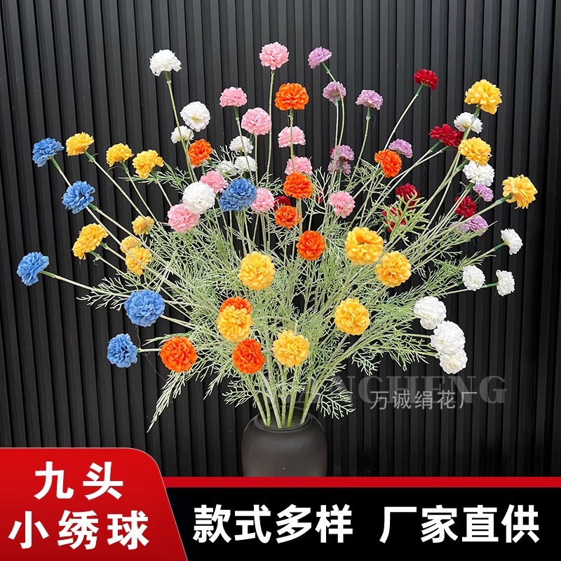 9つの小さなアジサイ造花、結婚式の花、卓球ボール、菊のフラワーアレンジメント、造花の装飾、結婚式のシルクフラワー