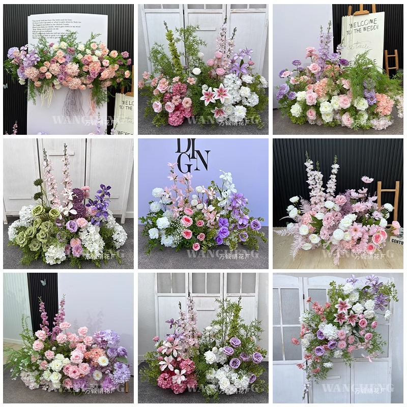 模造花森系粉紫鉄線蓮セット千代蘭結婚祝い背景装飾配置路引予約披露宴花芸