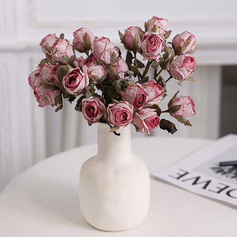 5頭の泡のバラのシミュレーションの花の高級な絹の花の復古の焦げた辺の乾燥したバラの家の装飾の造花の乾燥した花