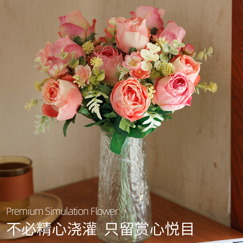 一本のシミュレーション多頭バラの花束結婚式の装飾人工花写真撮影の手配道具の造花