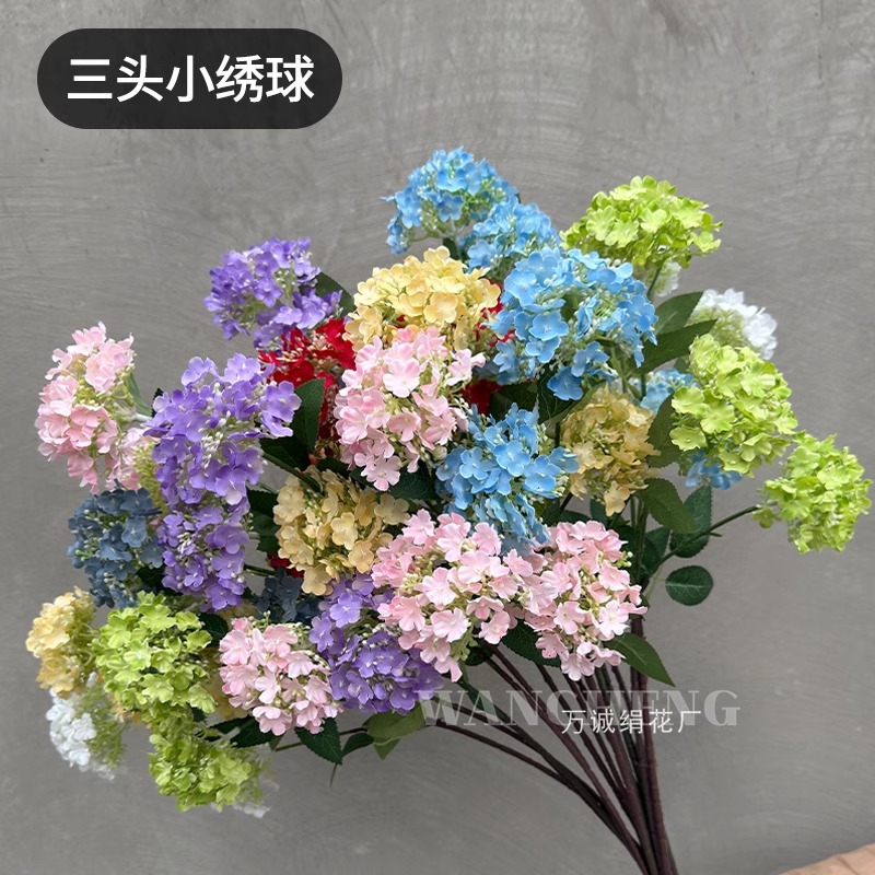 3頭のアジサイのシミュレーション花の結婚式場の天井に生け花を飾って客間の生け花のアジサイの置物を飾ります。