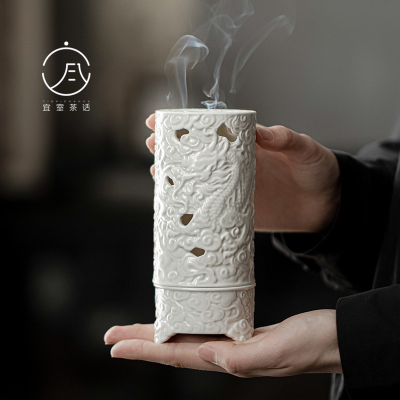 宜室茶話草木灰釉手作りレリーフ龍紋祥雲香炉盤香炉禅意安神沈香檀香炉