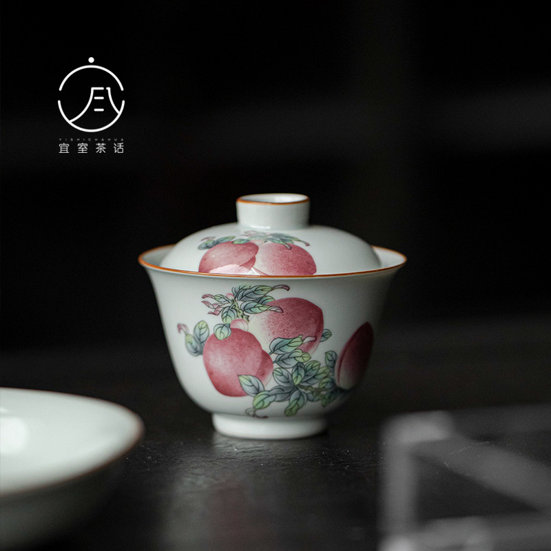 宜室茶話レトロ寿桃蓋碗高級家庭用蓋付泡茶碗一人の工夫茶器陶磁器茶器