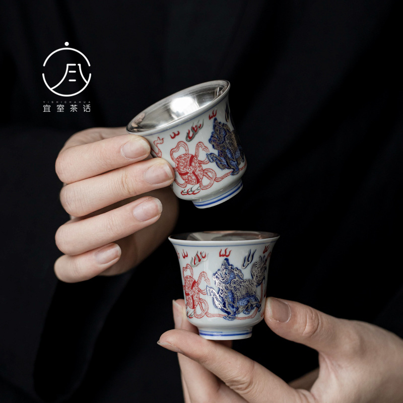 宜室のお茶の話999純銀の純度の銀の目を覚ますライオンの杯の家庭の創意の主人の杯の1個のお茶の杯の陶磁器の杯