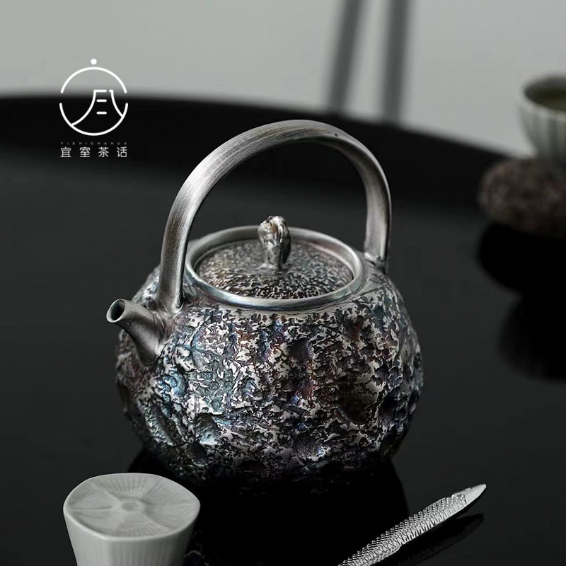 宜室茶話999純銀の手のティーポットの小さい家庭用のティーポットの工夫の茶器の石の紋様の銀の壺