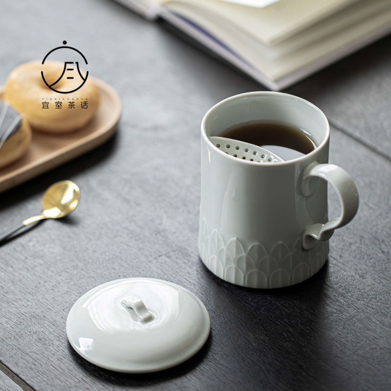 宜室茶話軽語蓮弁泡茶杯陶磁器マグカップ茶水分離事務カップ蓋付き専用個人カップ