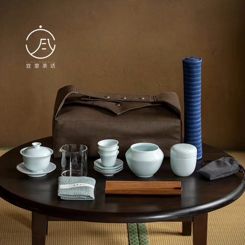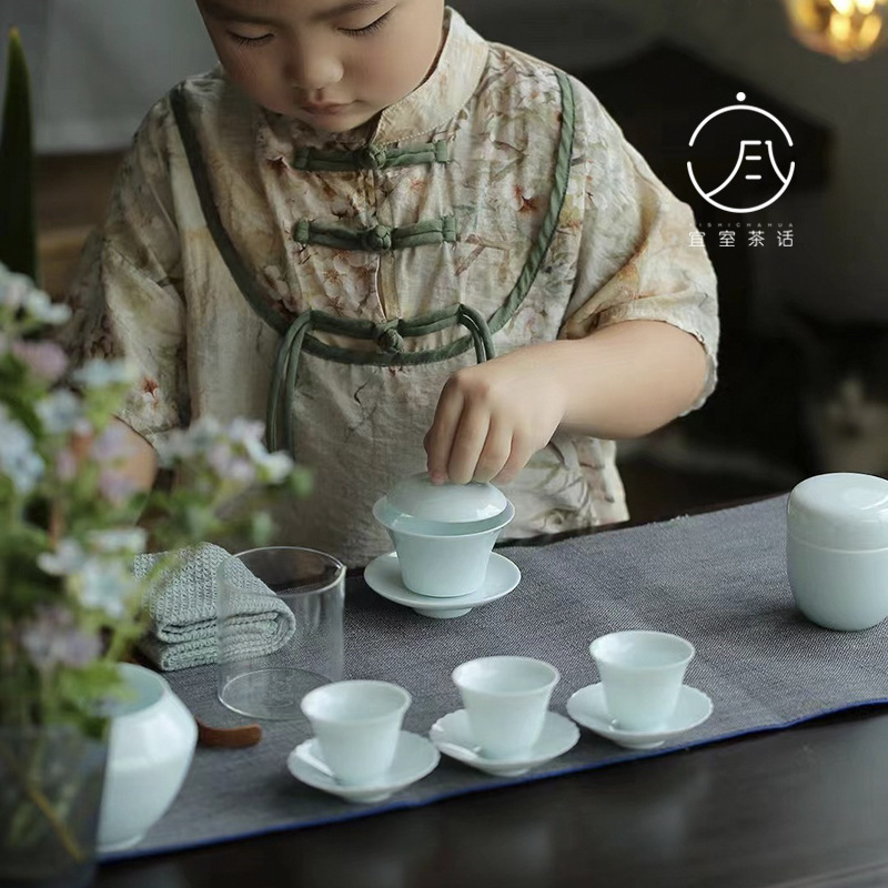 宜室茶話青白磁子供茶芸教育旅行茶器セット工夫茶器蓋碗ティーポットセット