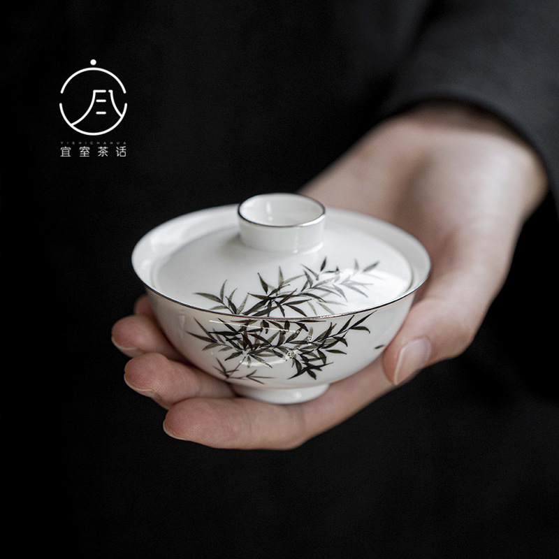 宜室のお茶の話の手描きの竹の元宝は碗のお茶の杯の陶磁器の2をかぶせてやっとお茶の碗の家庭の工夫の茶器の手で碗をつかみます。