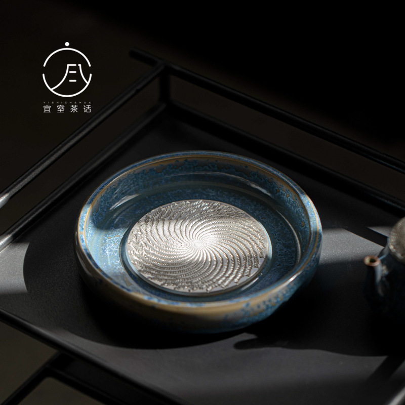 宜室茶話銀窯変藍黛壺承乾泡盤工夫茶器レトロ陶磁器貯水茶盤養壺盤