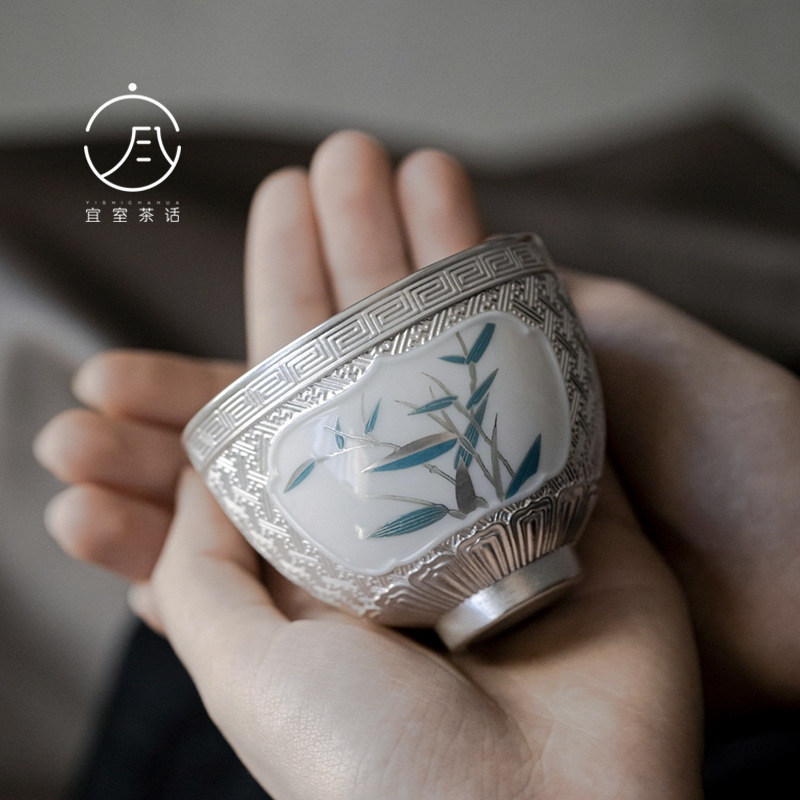 宜室茶話999純銀銀竹主人杯国潮単杯工夫茶器家庭用品茗杯