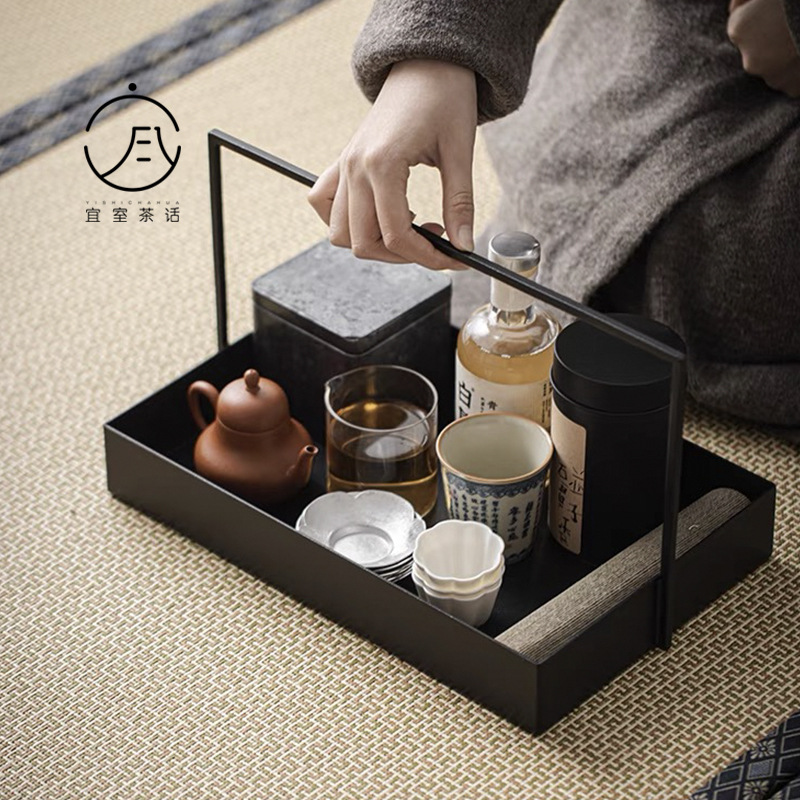 宜室茶話新中国式鉄芸提籠黒鉄茶具収納箱茶棚茶トレー見本間置物