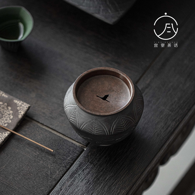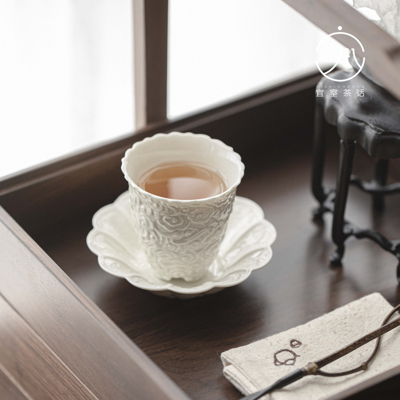 宜室茶話草木灰釉手作りレリーフ陶磁器主人杯工夫茶器家庭用復古茶杯品茗杯