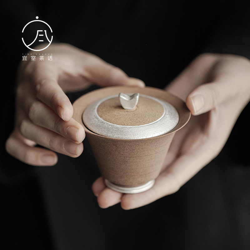 宜室のお茶の話の古い岩の泥の手作りの純度の銀の蓋の工夫の茶器の復古の禅意の陶磁器の家庭用の主なお茶の碗